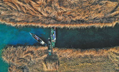 为了保护太湖水质和环太湖旅游观光道路的生态环境,每年冬季太湖国家旅游度假区都会组织村民收割湖中的芦苇。