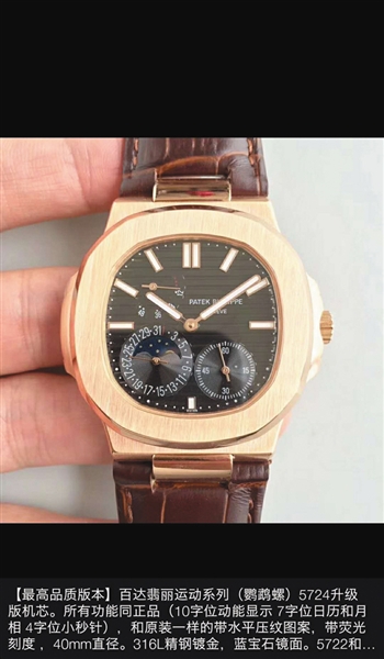 上述抖音“名表时光机”视频中,一款百达翡丽运动系列(鹦鹉螺)手表,正品官网价格超过30万元,商家表示所售价格为2250元。在商品介绍中,该款手表为5724升级版机芯。商家表示,“这款正品比较贵,做工复杂”,所以仿品卖价相对较高。