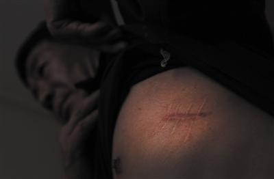 贾广日向记者展示2008年自己遇袭后的伤疤。