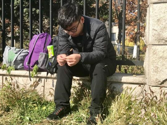 金哲宏之子金永鑫在法院外等待庭审结果 李彦国 摄