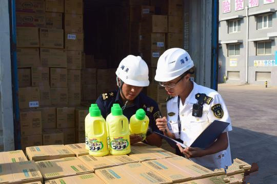 大连海关隶属大窑湾海关查验处与大连海事局下属大窑湾海事处通过前期的风险分析,锁定一票漂白剂为疑似危险品货物。双方工作人员第一时间开展联合查验,经取样化验,该批漂白剂含有次氯酸钠和氢氧化钠等化学物质,具有很强的腐蚀性,会释放出刺激性极强的有毒气体,过度接触会对人体肺部和呼吸道造成损伤,属于危险品货物。
