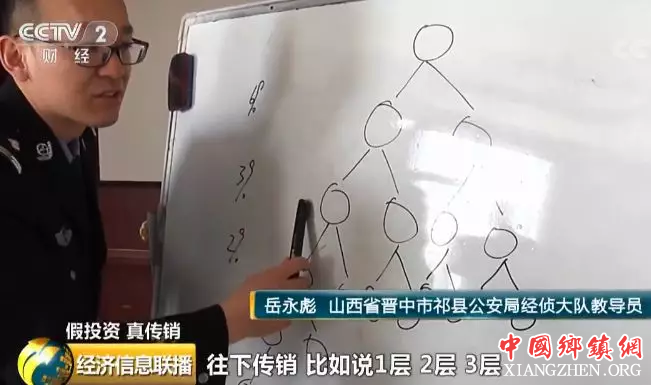 山西省晋中市祁县公安局经侦大队教导员 岳永彪:这是一种金字塔形式的传销。比如,1层、2层、3层,这都比较明显。这个是发展人的下线的话,第1层开始,他能抽取发展额的6%,第2层能抽取3%,第3层还可以抽取2%,再更多地发展下线,这叫做建点奖,还可以往下抽成。