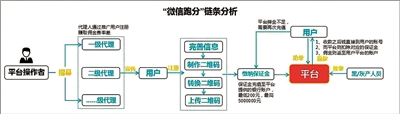 据业内人士介绍,微信“跑分”平台为用户、黑灰产人员提供技术支持和线上操作平台,他们通过在平台放单,利用参与者的微信支付收款码走钱。代理人通过平台注册,借助贴吧、网赚兼职群等推广吸引用户加入,通过推广用户注册赚取佣金费率差。