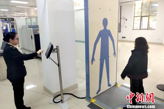 图为涉案女子通过毫米波人体快速安检仪进行扫描检查。海关供图