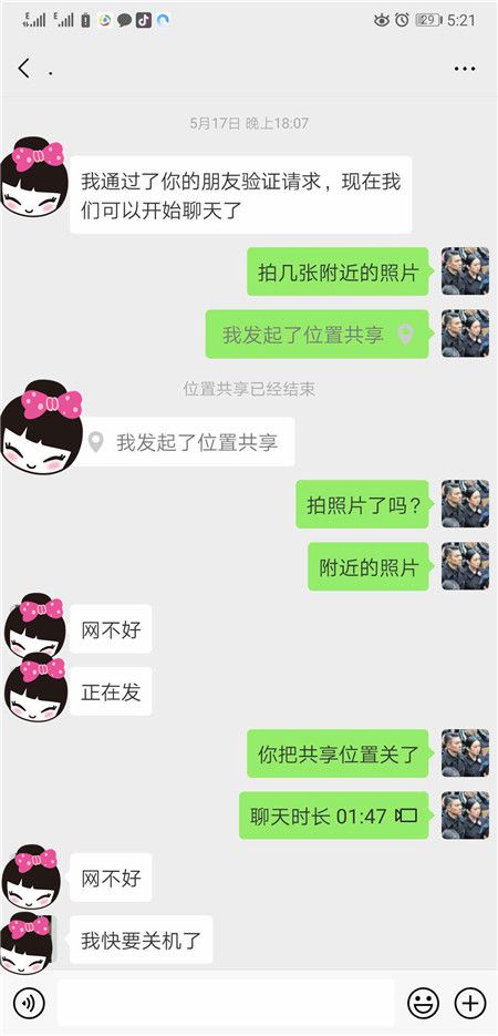 女孩和民警的聊天记录