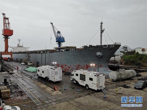 5月26日在威海荣成龙眼港拍摄的维修中的“金海翔”号货轮(手机拍摄)。 新华社记者 王阳 摄 图片来源:新华网