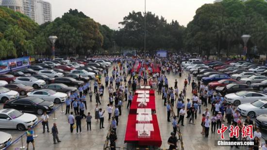 资料图:4月27日,广西百色市举行打击“民族资产解冻”类诈骗犯罪工作成果展,现场展示各种涉案豪车、现金、虚假文件、涉案手机、涉案银行卡等,吸引市民驻足观看。中新社记者 张广权 摄