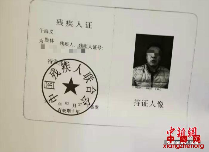 于海义的残疾证 殷清利供图