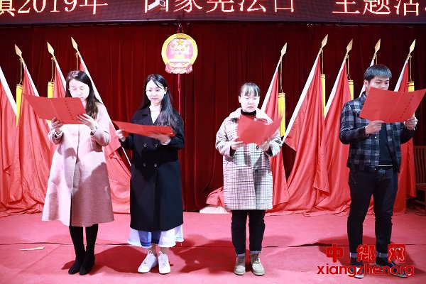 二是宪法诵读。镇机关青年干部代表李姝峥等4人进行《宪法在我心中》诵读。