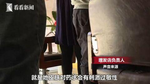 张女士来到当地医院做检查,诊断出接触性皮炎。虽然医生开了药,并吃了一段时间,但是现在她依然觉得头部不适,颈部以上有种难以表达的不适感。记者观察,张女士现在头皮都恢复良好,但是对比下依稀可以看到,红色和白色头皮。张女士希望,理发店能赔付相关检查以及后续治疗费用。记者来到了涉事理发店了解情况。对方表示,理发店是有相关营业执照,使用的染发剂也是符合《化妆品卫生监督条例》有关规定。而对于张女士的情况,负责人表示,他们使用的是有望烫发液,都是在有效日期内的产品。那烫发和染发的过程又是否符合相关规范呢?理发师表示,染发剂只是作用于头发上。不过,业内人士认为,类似张女士的情况,不排除理发师操作不当,如将药水弄到头皮上过久,才会出现掉头皮。