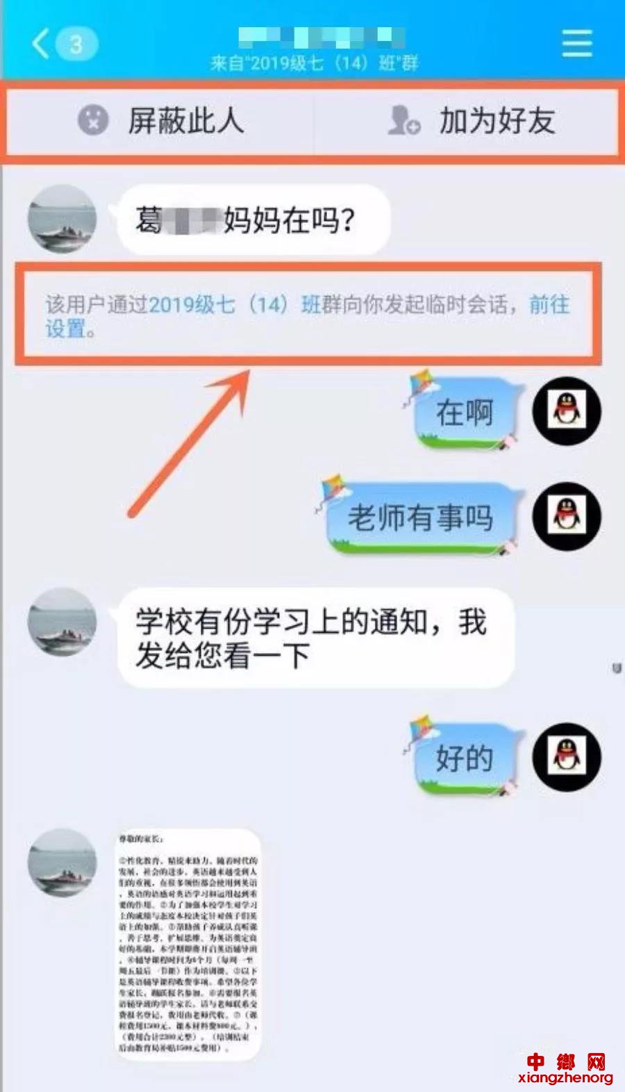 这个骗子也是先利用黑客手段混入QQ群,但是和第一张图里的骗子不同的是,这个骗子喜欢单个添加家长的QQ,挨个实施诈骗: