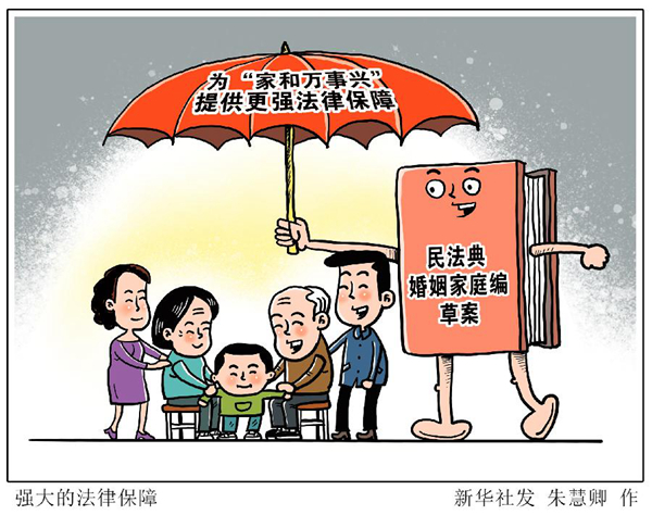 常言道:“家和万事兴”。个人婚姻家庭关系的和睦与否,与全社会的和谐稳定息息相关。从注重“家风”建设,到加大权益保护力度,即将提请全国人代会审议的民法典草案,是我国婚姻家庭立法进程中的重要里程碑。