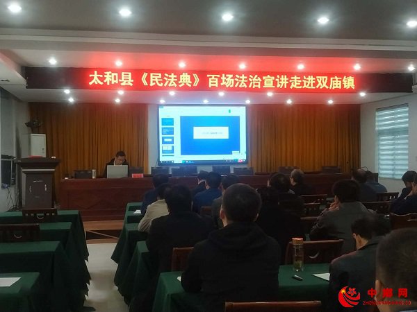 中乡网安徽讯 《中华人民共和国民法典》于2020年5月28日经第十三届全国人大第三次会议审议通过,并于2021年1月1日起实施。这是新中国成立以来第一部以“法典”命名的法律,是一部固根本、稳预期、利长远的基础性法律。为充分认识颁布实施《民法典》的重大意义,推动《民法典》更好更快地实施,营造浓厚的学法守法氛围,培养解决问题靠法的意识和能力,根据太和县普法办及《民法典》宣传工作方案要求,2020年10月26日上午,双庙镇邀请太和县《民法典》宣讲团成员、太和县天联天律师事务所合伙人高旭东开展《民法典》专题讲座,双庙镇全体党员干部、各村支部书记、主任、镇直各单位负责人共计80余人参加。
