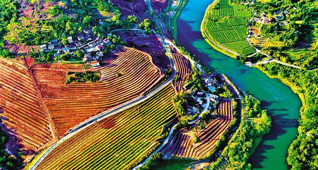 近日,渝北区青龙村,新建通车的统大路,流淌不息的御临河,横竖有致的柑橘树林组成一幅美丽乡村新图景。