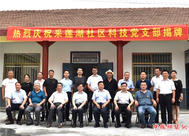 郯城县马头镇采莲湖社区科技支部部分党员与有关领导合影留念。