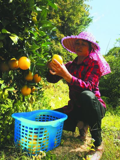 果农在绿然生态农庄采摘脐橙。 戴敏 摄