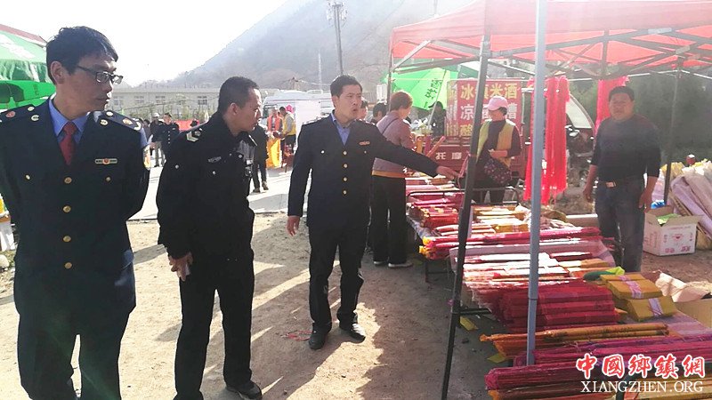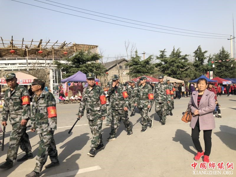 庙会现场,100多名镇村党员干部佩戴红袖章,按照各自所在组组长的安排,有的在为前来逛庙会的群众指引方向的同时,有效疏导车辆,确保交通畅通;食药所、工商所人员对宁山寺庙会斋饭进行监督留样,对摊贩进行食品安全宣传;司法所干部及党员志愿者为前来逛庙会的群众开展普法教育、宣传“扫黑除恶”、反邪教、非法集资等知识,以此同时为群众发了各类宣传资料3000余份;各村抽调的民兵全天候不间断加强巡逻,确保秩序稳定。