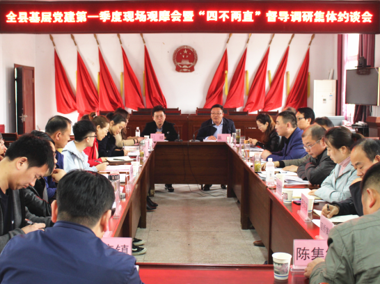 (中国乡镇网安徽讯)为交流、总结第一季度基层党建重点工作任务落实情况,推动组织系统“四不两直”督导调研发现问题立行立改,4月2日,全县基层党建第一季度现场观摩会暨“四不两直”督导调研集体约谈会在兰桥乡召开。全县各乡镇党委副书记或组织委员及县委组织部农组科、电教中心有关同志参会,县委组织部副部长葛耀同志带队并主持会议。
