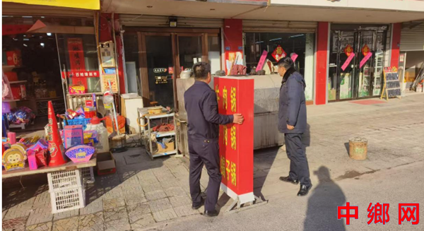 中乡网庐江讯 为进一步加强集镇精细化管理,近日,安徽省庐江县郭河镇组织镇综合执法队、市监所、郭河社区等力量,开展了集镇街道“一店多招”专项整治行动,规范户外广告设置,消除街道安全隐患,改善市容市貌,提升集镇颜值。