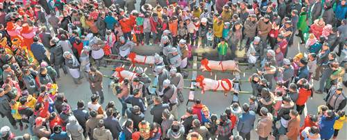火爆的东安镇刨猪文化节。