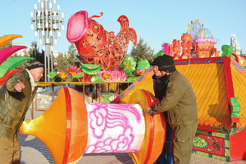 在新春来临之际,商都县祥和广场的大型灯展灯具正在紧锣密鼓安装调试中。充满祥和、平安、幸福元素的各式各样大型花灯相继亮相,增加了节日喜庆气氛。