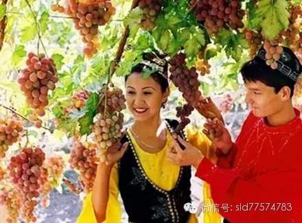 “吐鲁番的葡萄哈密的瓜,库尔勒的香梨人人夸”。吐鲁番葡萄沟内绿树成荫,葡萄架成片。终日流淌的天山雪水滋润,最诱人的当然是挂满枝头的葡萄,晶莹如珍珠,鲜艳似玛瑙,令人垂涎欲滴。在葡萄沟,卖葡萄的摊点上摆满了各种葡萄,金黄色、紫色的、褐色的 琳琅满目,大的如一节小手指,小的如大米粒,名字也是很古怪的,有叫女人红的,有叫男人红的,有的号称治高血压的,有的号称治风湿的,看得让人眼花缭乱,目不暇接。