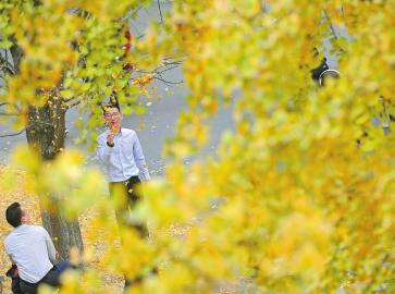 11月17日,电子科技大学沙河校区,银杏树叶渐黄,成都赏黄叶最佳季来临。本报记者 肖雨杨 摄