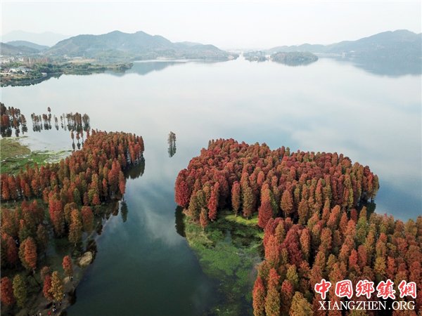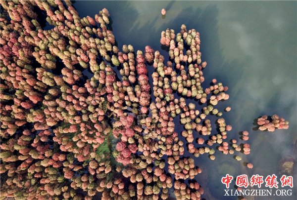 近日,余姚市四明湖畔的池杉颜色转红,成为冬日里的一抹亮色。