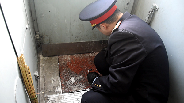 车辆运行中,有时地面的积雪会被刮起,由车厢连接处缝隙向车内倒灌,把门头变成“冰雪世界”。所以每到一站之前,列车员们都要仔细检查厕所、门头、上下水管是否堵塞结冰。