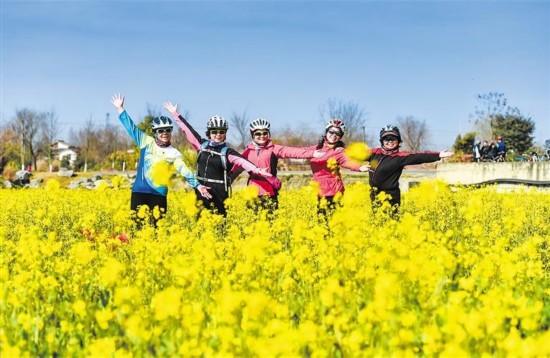 一排排粉墙黛瓦的民居错落有致、一片片新翠柳叶随风摇曳、一簇簇油菜花朵盛情怒放,巷道边绿草成茵、游客们闲游其中不亦乐乎……进入郫都区青杠树村,一幅描绘“山清水秀的生态长廊、村容整洁的美丽乡村、宜居宜业宜游的美好家园”的诗意画卷徐徐展开,推进乡村绿色发展,让美丽的青杠树村成为了景点。