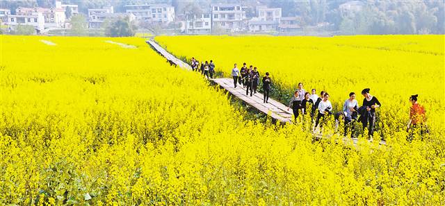 3月14日,大足区十八村寨之一的棠香街道和平村,成片的油菜花盛开。该村依托位居城郊、紧临景区的优势,以山水、田园为核心,打造观光农业、乡村旅游相结合的城市美丽后花园。