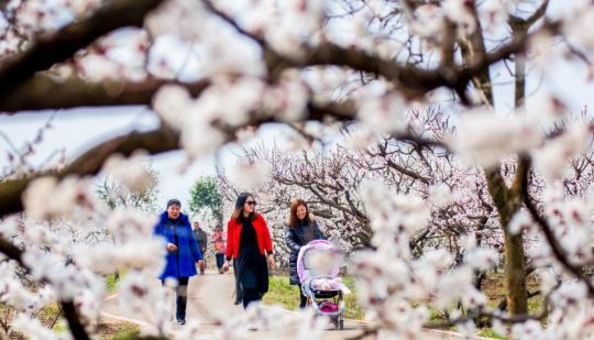 3月22日,在徐州铜山区吕梁山风景区,绵延十里的杏花赶在春分时节开出漫山遍野的粉白。据了解,2002年,该地马集村村支书卢兴村带领村民们成片种下了700亩杏林,通过多年努力,如今马集村周边6个村5000亩15万株杏树已经连片发展成“杏花之海”,成为当地有名的城郊休闲旅游目的地,农民开启乡村振兴的“杏”福生活。