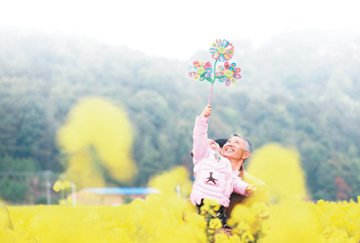 游客在湖南省衡阳县库宗桥镇华山村的油菜花海中游玩。 刘欣荣摄
