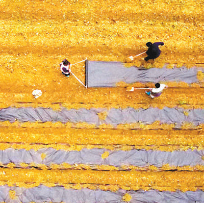 贵州省榕江县车江大坝,村民在覆地膜准备春耕生产。 王炳真摄