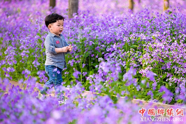 3月28日,一名小朋友在南京科技馆湿地公园盛开的二月兰花丛间玩耍。新华社发(苏阳 摄)