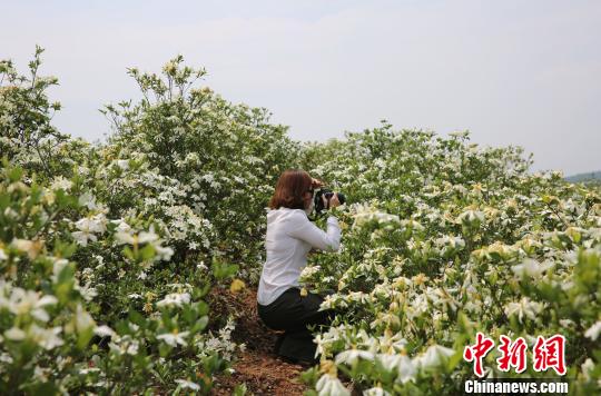 栀子花美景吸引了不少游客前来赏花拍照游玩。 邓和平 摄