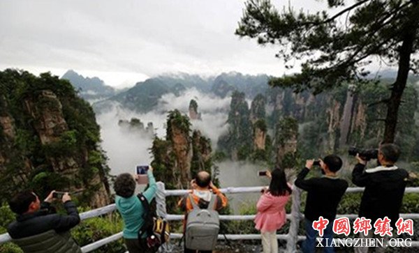 5月6日,游人在张家界武陵源风景区欣赏云海美景。吴勇兵 摄