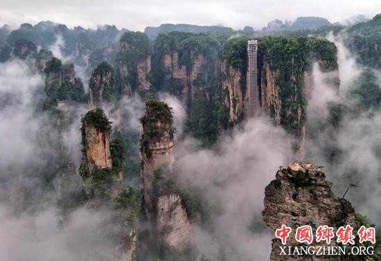 5月6日,雨后的湖南张家界武陵源风景区,漫天的云雾从天而降,飘洒萦绕在连绵的峰林间,美不胜收,让各地游客流连忘返。