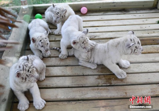 原标题:济南野生动物世界雪虎五胞胎与游客见面