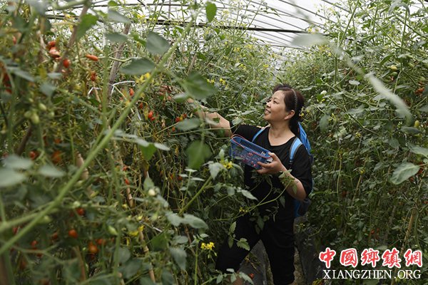5月27日,游客在浙江省宁波市奉化区滕头村的绿色农业示范基地采摘小番茄。