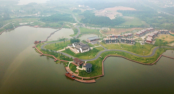 江宁云水涧文化展示中心(6月5日无人机拍摄)。云水涧文化展示中心充分整合自然资源,以水、田园、耕地与民宿为载体,打造多元化休闲农业旅游度假地。