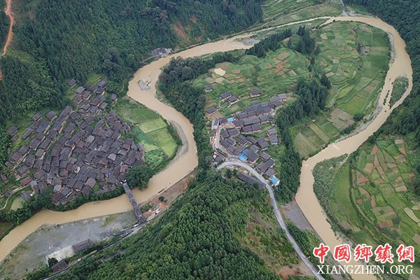 烟雨中的贵州省榕江县乌公侗寨风光(6月24日无人机拍摄)。