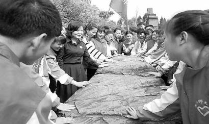 4、冕宁红色之城、彝海结盟两大红色旅游景点 众多学子在巴中市南龛山红军石景点处参加红色研学游。 (省旅游发展委供图)