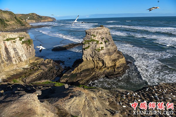 塘鹅对爱情忠贞,结成伴侣就终其一生。7月开始,塘鹅进入求偶季节。穆里怀海岸位于新西兰北岛西海岸,濒临塔斯曼海,以黑沙滩、粗犷原始的海岸地貌和惊涛巨浪的景观著称,是新西兰主要的塘鹅栖息地。