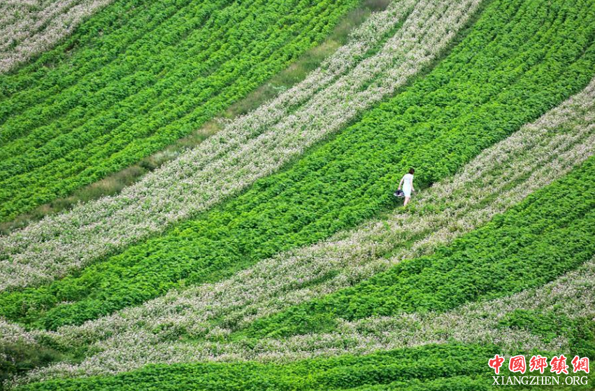 7月12日,游客在贵州威宁板底乡雄鹰村荞麦花田中拍照留念。连日来,贵州威宁板底乡雄鹰村种植的数千亩荞麦花竞相绽放,美景宜人。 新华社发(何欢 摄)
