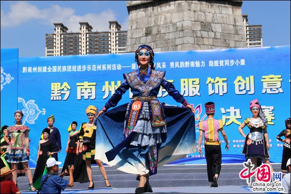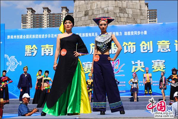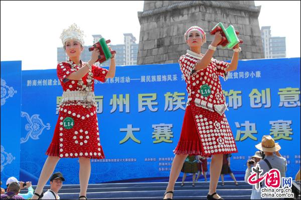 中国网7月20日讯 7月18日,黔南州民族服饰创意设计大赛决赛在都匀市文峰塔广场精彩上演,福泉原生态民族服饰精彩纷呈。