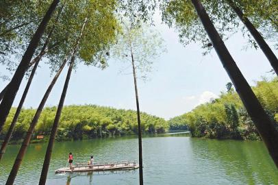在植被覆盖率达87%的宜宾蜀南竹海,游客泛舟湖面,畅游翠竹十里长廊。蜀南竹海面积120平方公里,景区内竹子种类58种,占地7万余亩,集山水、溶洞、湖泊、瀑布于一体,兼有历史悠久的人文景观,是我省最大的原始“绿竹公园”。目前,当地正深度开发竹特色旅游项目,推进竹海大餐厅、竹海童话世界、热气球基地、农家乐改造提升等14个项目建设,力争将蜀南竹海打造成为集休闲娱乐、文化体验和度假养生于一体的旅游度假区。