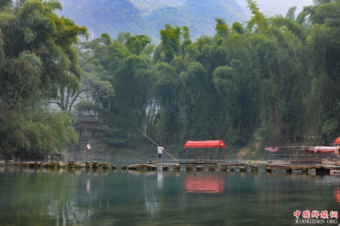 9月12日,竹筏漂浮在大小井风景区河面上。