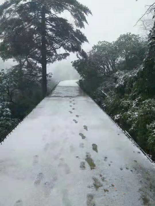 据潘磊介绍,由于此次降雪主要在山顶,交通并没有受到影响。景区相关工作人员也介绍说,目前景区由于小范围降雪,游客接待仍然正常,索道、交通照常运行。