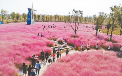 近日,江苏淮安白马湖森林公园内秋意盎然。80亩粉黛乱子草怒放,吸引众多市民和游客观赏。(王 昊)